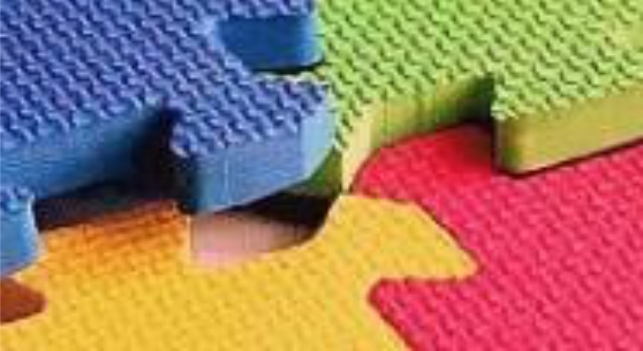 Suelo goma eva tipo puzzle, de medidas 1x1m, grosor 2 cm, en verde y azul. (fabricación española).